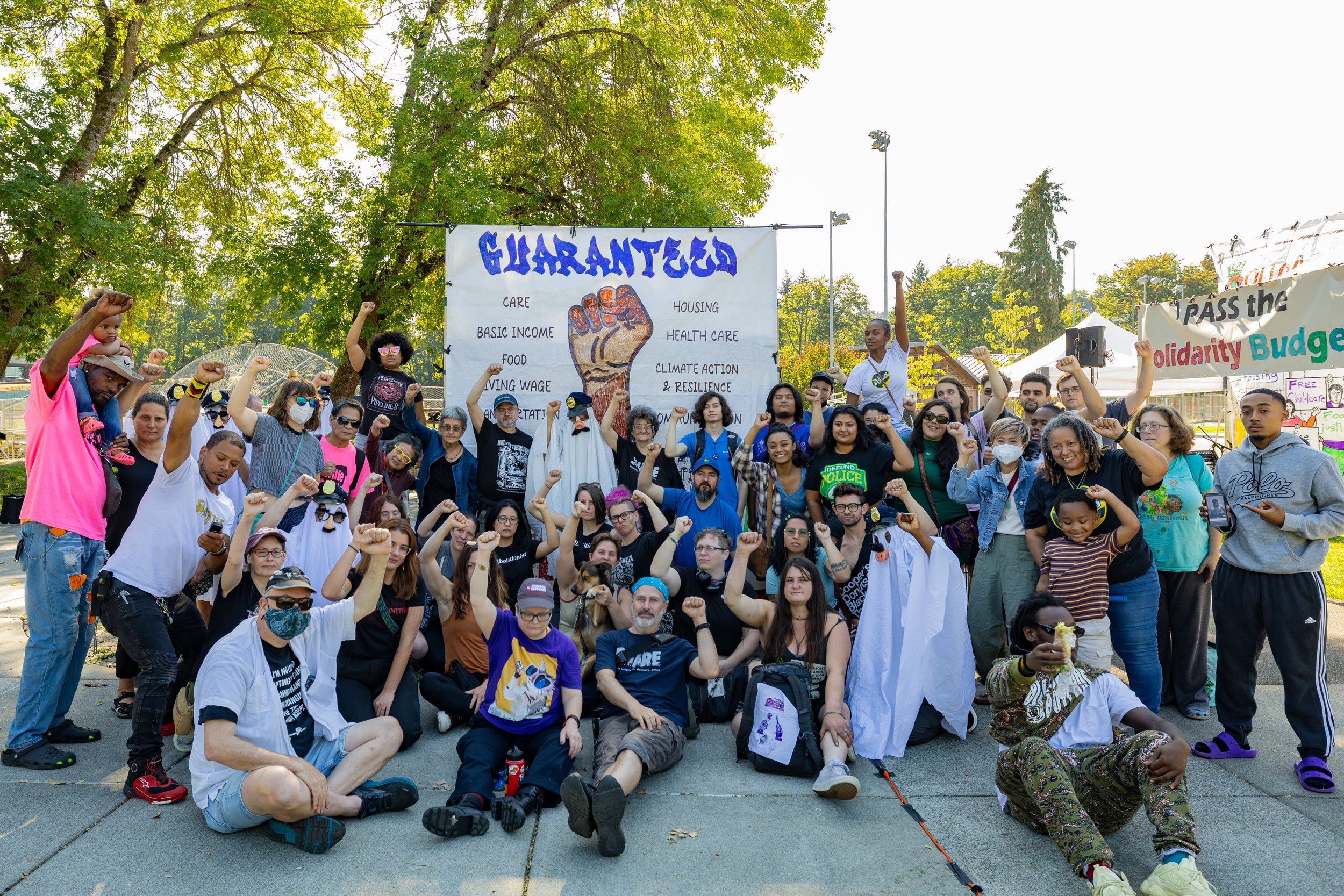 We believe true safety comes from guaranteeing that people’s material needs are met. Every person in Seattle should have what they need to survive and thrive. We reject a system that sorts people into categories of deserving and undeserving and assigns resources accordingly. We reject eligibility requirements for essential goods and services that require people to prove they’re deserving of what they need to live and are used to criminalize and exclude the people most in need. We reject the use of the criminal legal system as an entry point to meeting basic needs. Instead, we call for a city budget that guarantees our collective well-being without conditions. Our budget advocacy will focus on fighting to win the Solidarity Guarantees. We will evaluate any proposed budgets on how much closer they get us to achieving universal, accessible, and decommodified services.